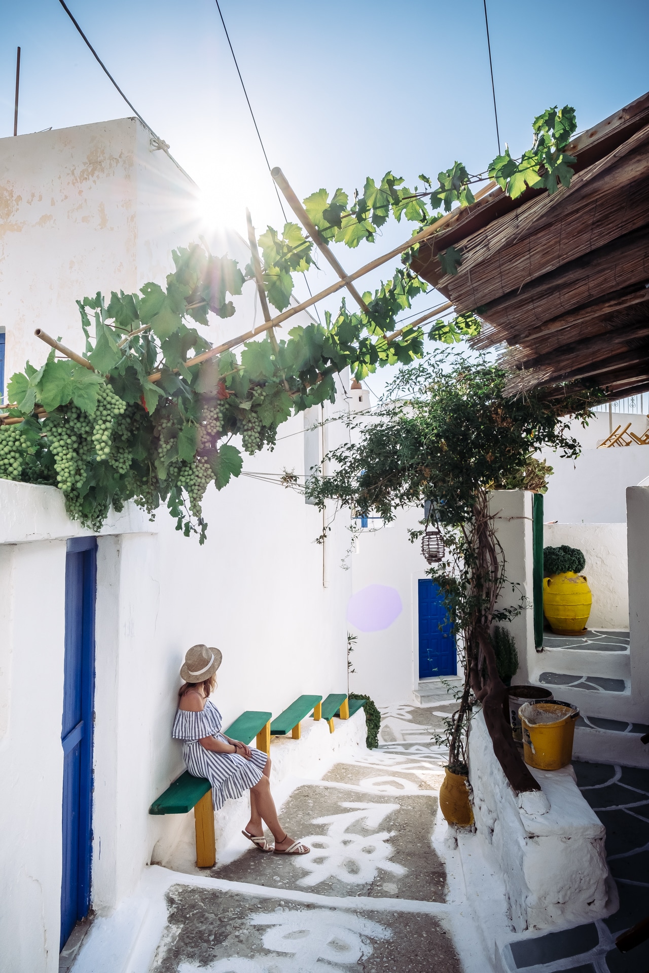 Pour se rendre à Amorgos, il va falloir que tu prennes le ferry ;-). N’hésite pas à passer par DirectFerries, qui compare les prix de plusieurs compagnies. Donc, une fois arrivé, pose tes valises au Skopelitis Village, avant de filer sur Chora pour un bon dîner chez Transistoraki.