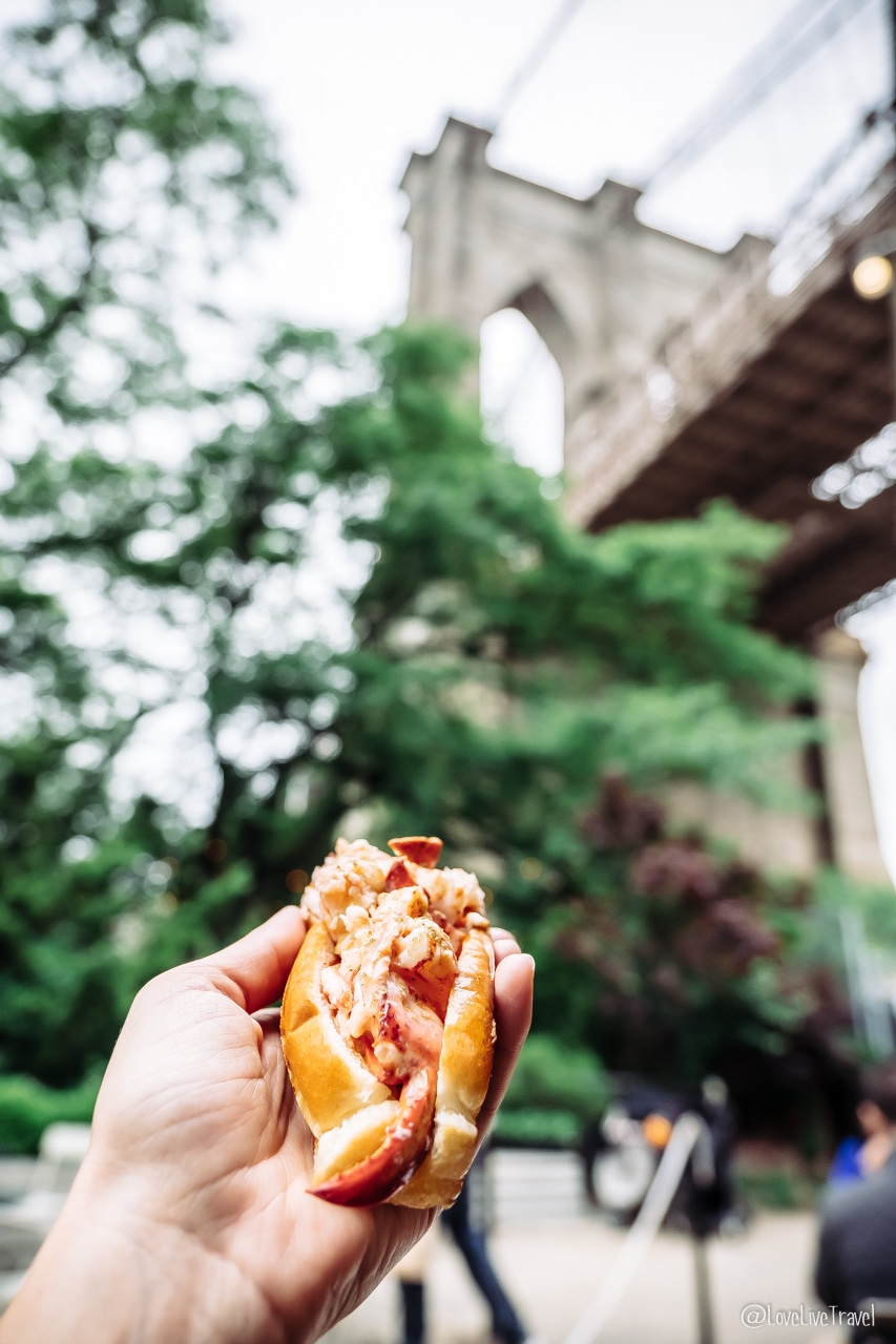Une fois de retour sur la terre ferme, tu vas pouvoir rejoindre le Brooklyn Bridge en passant par Fulton Market. Et tu sais ce qu’il y a au pied du Brooklyn Bridge, côté Brooklyn ? Un Luke Lobster, qui fait des lobster rolls !!!! De bons sandwichs au homard (ne t’inquiète pas, aux USA, le homard est à prix doux).